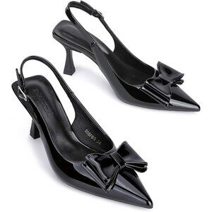 Elegance Designed: Crafted with high-quality patent leather fabric, closed pointed toe, and the bow knot on the front, these slingback heels for women adds a fashion and elegance for your daily look.