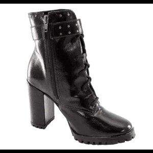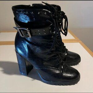 Black Faux Leather Studded Lace Up Ankle Boots US8 EU39