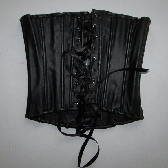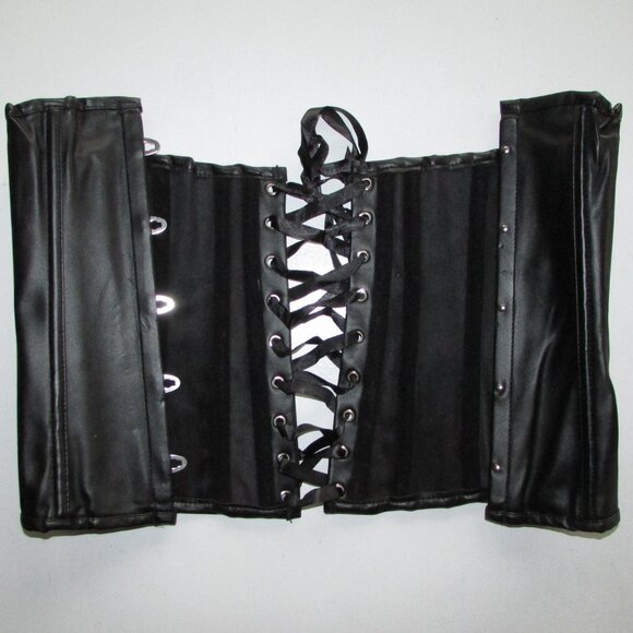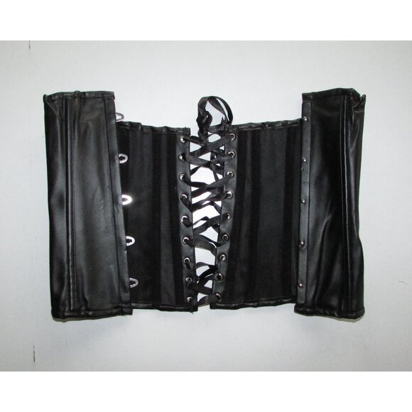 Black Faux Leather Underbust Waist Cincher Corset - NEW