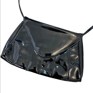 Black Faux Patent Leather Small Snap Close Shoulder Purse