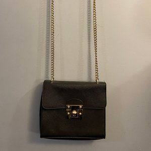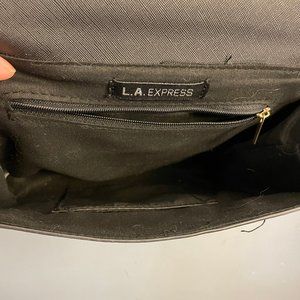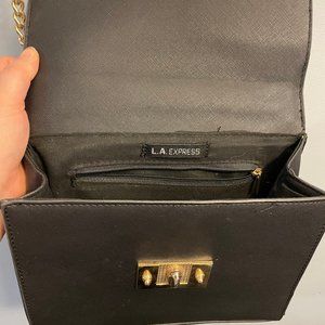 Black Faux-Leather Purse, sits above the waist-small to medium size-fits wallet, phone, small booklet, etc