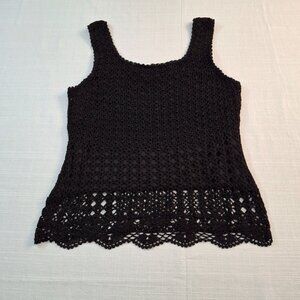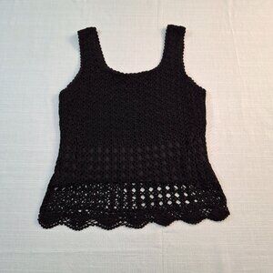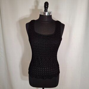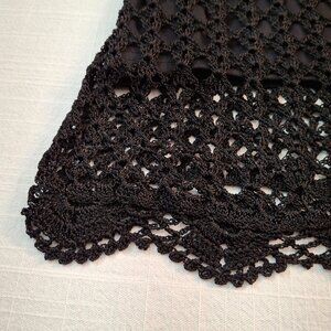 Black Fine Filigree Crochet Rayon Corset Size M Lined Scalloped Edges Stretch, Wide Scoop Neck