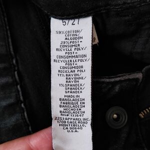 These black jeans feature a high-rise waist and a wide leg flare that adds a touch of retro charm. Crafted from sturdy denim, they offer a sleek and polished look, perfect for elevating any outfit.