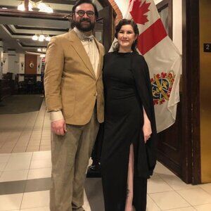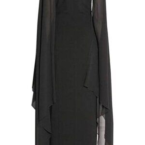 Black evening dress - stretch material. Sleeves that reach the floor but I added buttons to adjust them to waist length as needed.