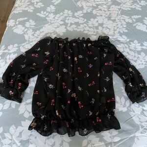 Boho chic top. Elastized neck, sleeves and waist. Many way to wear off shoulder or round neck. Chiffon, 100% Polyester. Brand name Mercer and Madison. Women size large.