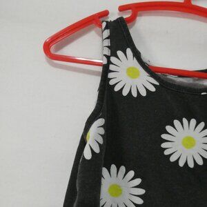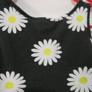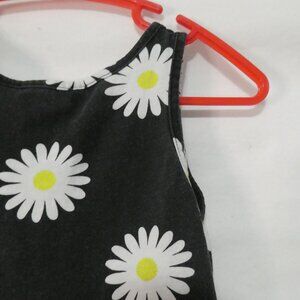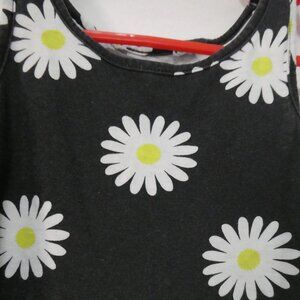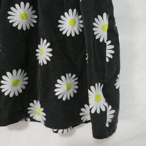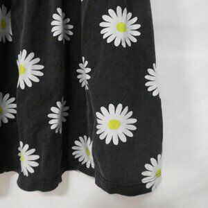 This charming mini dress features a playful daisy print on a black background, perfect for a casual day out