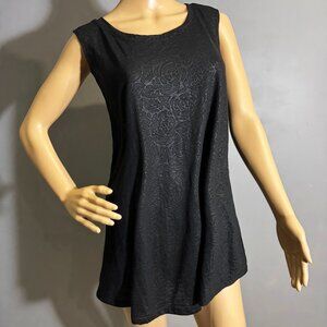 Black Floral Embossed Open-Back Tunic Top 🖤 draped twist detail