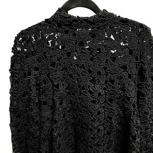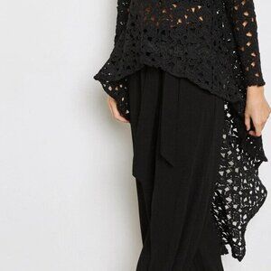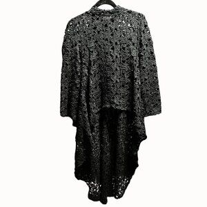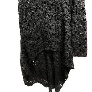 Absolutely beautiful top. I'm not sure if it's a dress or a shirt, it works as both! Extra flattering cover-up with thick chunky open lace fabric, high neck cut, hi low flowy front and back and zipper closure in the back. Wear it with a black bra, bandeau or jumpsuit, slacks or swimsuit. It's the perfect extra for anything year round! EUC, worn once.