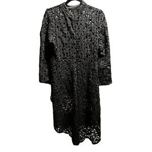 Suzy Shier Women's Black Floral Lace Hollow Out Long Sleeve Hi-Low Asymmetrical Shirt Dress