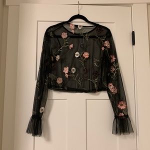 Ten Sixty Sherman Black Floral Mesh Crop Top