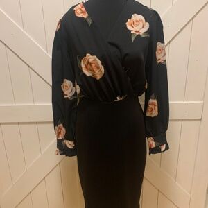 Black Floral Office Bodycon Suzy Shier Dress for Women