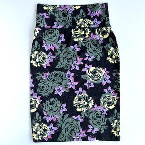 This is a brand new, below-knee skirt in size S/P, with the original tag still attached. It is made from a stretchy jersey fabric composed of 95% cotton and 5% spandex. The skirt is unlined, but the waist panel is lined for added structure.