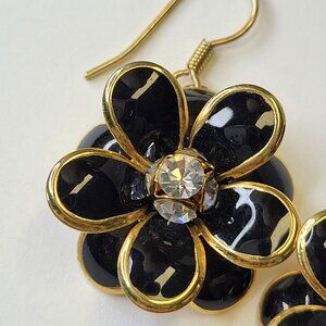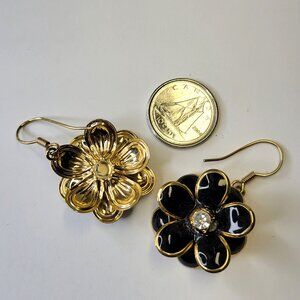 Gold and Black Flower Earrings