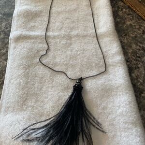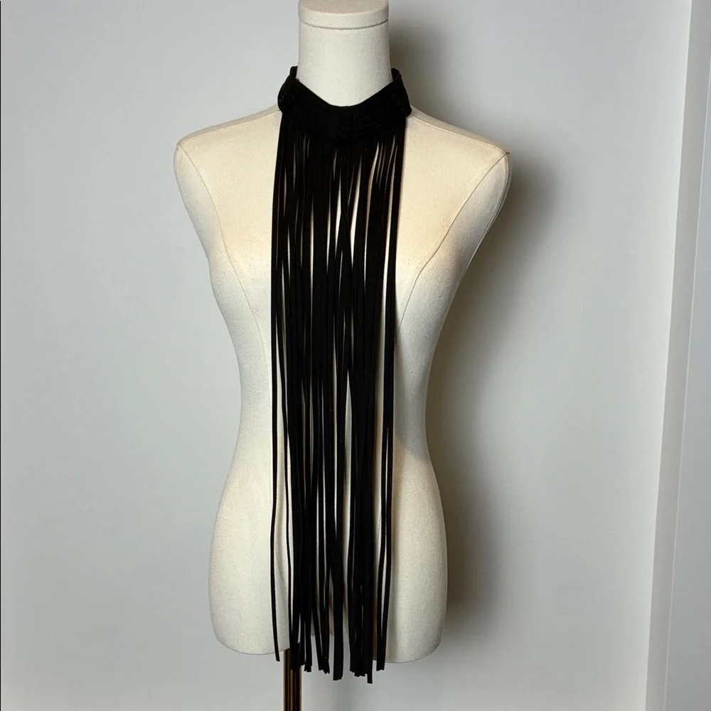 Bold black fringe necklace that adds instant edge to any outfit. Lightweight design for comfortable all-day wear. Elegant black color creates a striking focal point. Versatile accessory for dressing up casual or evening looks.