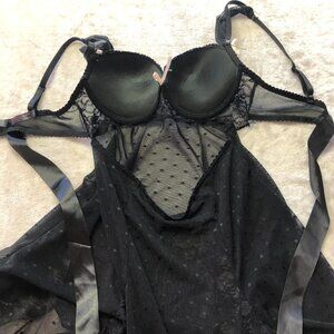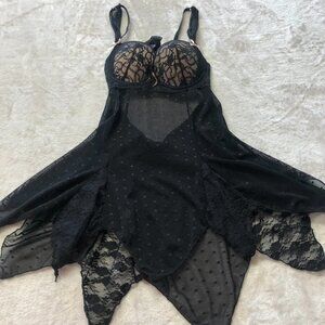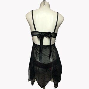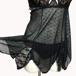 Black Fuchsia Sheer & Lace Baby Doll Chemise Size Small