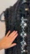 Stylish black real fur vest with crochet details and front pockets. Perfect for layering.
