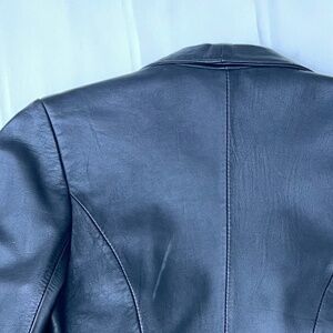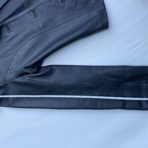 Classic black leather jacket in genuine leather. Approximate measurements shown in photo.