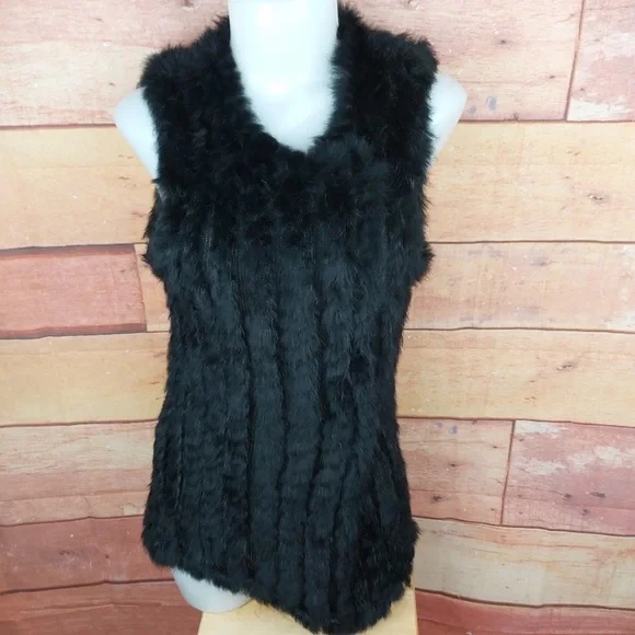 Black Genuine Rabbit Fur Vest