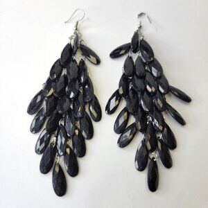 Black Glass Bead Long Earrings Chandelier Teardrop Diamond Shape Drop Earrings