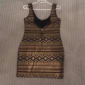 This black and gold bodycon mini has a functional gold zipper at the front which can be opened for a more revealing look.