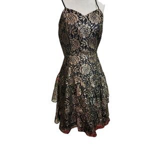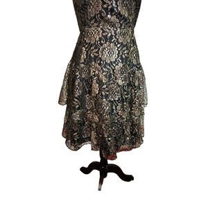 Black & Gold Ruffle Lace Prom Dress Strappy Sexy 80s Short Tiered