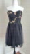 Chic strapless dress with gold embroidered floral details and a flattering sweetheart neckline. The bodice is structured and fitted, flowing into a soft tulle skirt that moves beautifully.