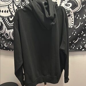 Stay stylish with this black graphic hoodie featuring a bold design. Perfect for casual outings.