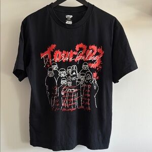 Explore style with this black graphic t-shirt featuring a bold design. Perfect for casual outings.