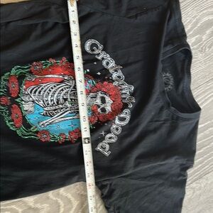 Black t-shirt featuring a colorful skeleton graphic. Perfect for casual wear.