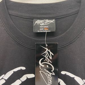 Show off your edgy style with this black graphic tee. Perfect for casual outings, this short sleeve shirt features a bold design that stands out.