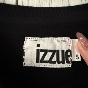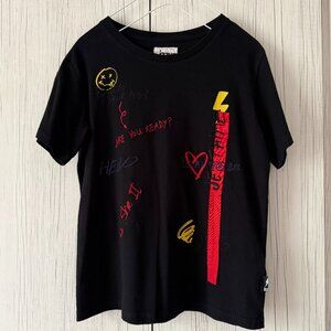 Edgy and expressive izzue Hong Kong graphic tee featuring bold embroidered and printed text details in red, yellow, and blue with a playful “Je t’aime” red ribbon accent. Made from soft black cotton for a comfortable, breathable fit. A standout streetwear piece that pairs effortlessly with jeans or layered under a jacket for an urban-chic look.