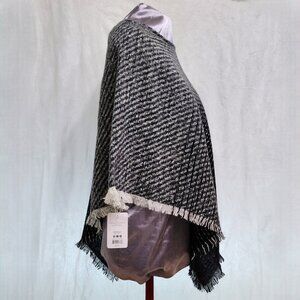 Bijoux Terner Black & Grey Poncho style Shawl. New with Tags. One Size. Acrylic(very soft). 29 inches from neck to point of hemline aprox. and 31 inches neckline aprox. Can be worn as a handkerchief shaped skirt also!. NWT EUC.