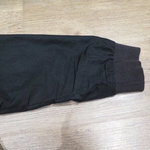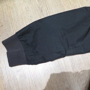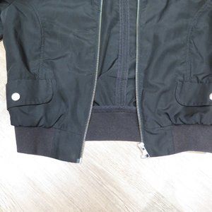 A super thin and light, cropped bomber jacket from H&M. Well loved but in great condition. You can see the natural wear on the metal hardware and some wrinkles but still looks almost new. Super cute with jeans. The material is similar to a windbreaker type jacket.