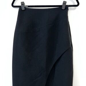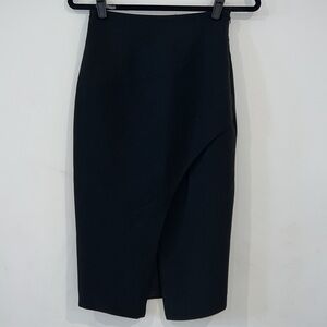 Black Halo Juma Black Asymmetrical Faux Wrap Pencil Tailored Skirt size 0 fits Size Small.