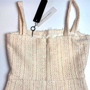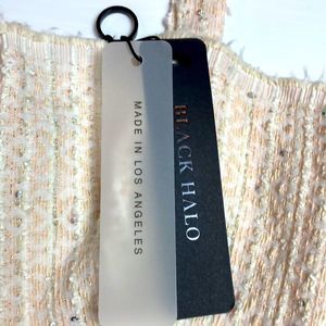 Brand new with tags Black Halo jumpsuit. The tweed material has a very Chanel-like vibe with a slight shimmer of thread in it. Perfect for any late winter occasions. I’m a size 2 and it fit perfectly when I tried it on.