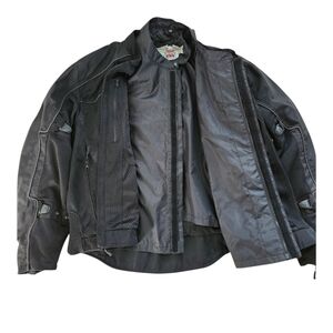 2 in 1 genuine Harley Davidson jacket with many pockets with zippers and elbow protection.