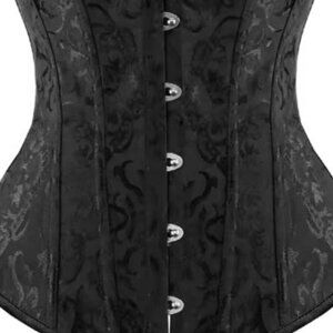 Black unique patterned jacquard with black satin trim boned corset