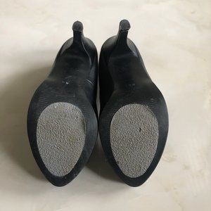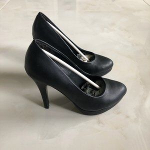 Call it Spring Black leather heels. Heel 4.5 inch.