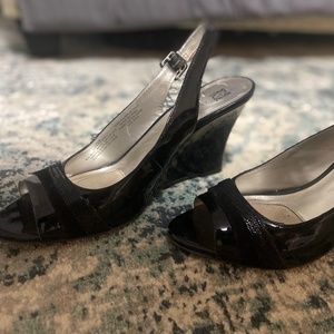 Anne Kline Patton Shoes. Open toe with straps and a nice stable block heel.