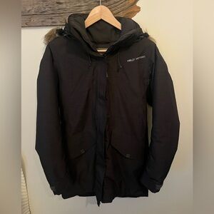 Black Helly Hansen Winter Coat with Fur Lining on Hood
