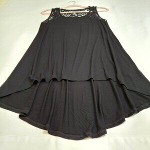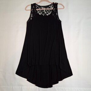 Black Hi Low Lacetop Trapeze Dress Size M Stretch Knit