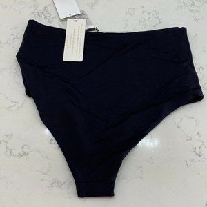 Stylish and comfortable black high-waisted swim bottoms. Perfect for a sleek beach look.