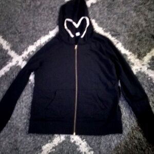 Cosy Size Large Regular Black Hoodie with Gold Zipper From Old Navy For Women In Prestine Condition