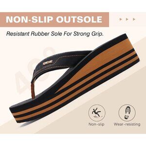 .Platform Design:The platform wedge on these womens flip flops has a 1.18-inch (3 cm) front platform and a 1.97-inch (5 cm) heel. This fashionable design increases height and stylish.