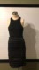 This black pencil skirt features a chic ruched design, perfect for cocktail parties or a night out. Its knee-length cut and sleek silhouette offer a sophisticated and stylish look.