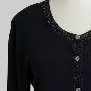 Black Knit Sequin Crochet Detail Button Up Holiday Party Office Sweater- Sz-M