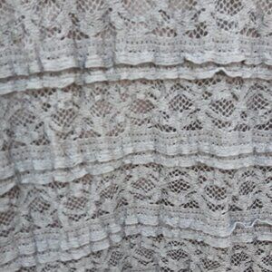 The lace is in 1 inch thick sections and repeats from the top of the traps to the bottom.