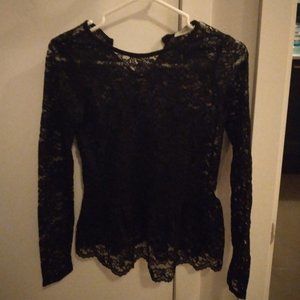 Worn once, excellent condition. Sheer, black lace. Shoulders are a bit too narrow for me.