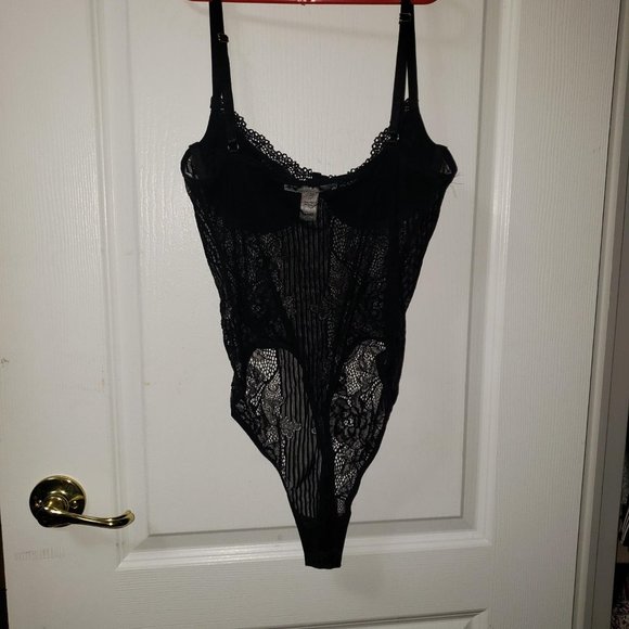 Product Description: Lace Mesh Bustier Bodysuit - Black / M