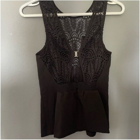 Black Lace Peplum Top XS Slim Fit Gothic Cocktail Party Sexy Evening Shirt